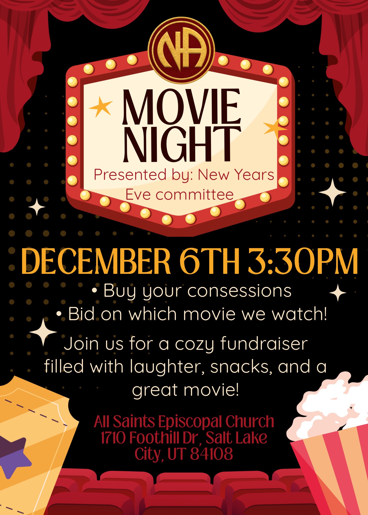 - Join us for a cozy fundraiser filled with laughter, snacks, and a great movie!